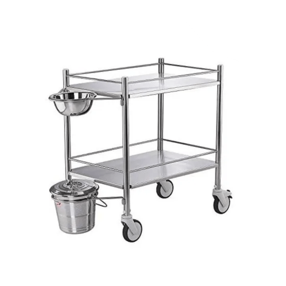 - Stainless Steel Basin: Some trolleys have a small basin or bowl that can be filled with antiseptic solution, useful for dipping gauze or swabs during dressing changes.